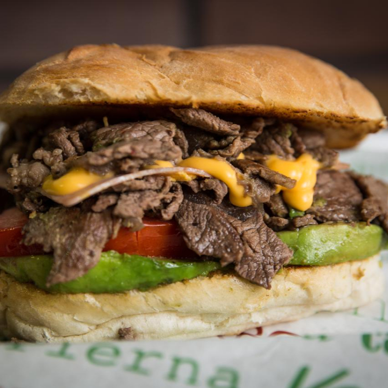 Carne asada (todas nuestras tortas y burros incluyen base de mayonesa aguacate y tomate)