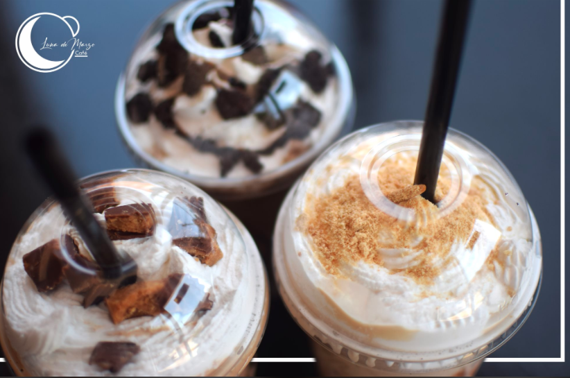 Frappé con jarabe de chocolate, y crema de cacahuate16 oz