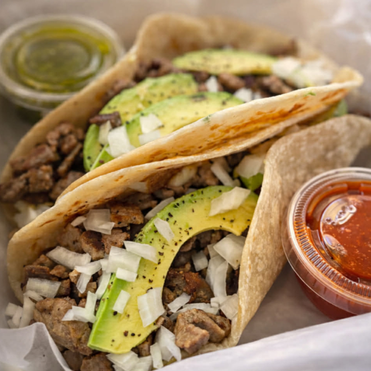 Burro grande de asada con cebolla y aguacate.