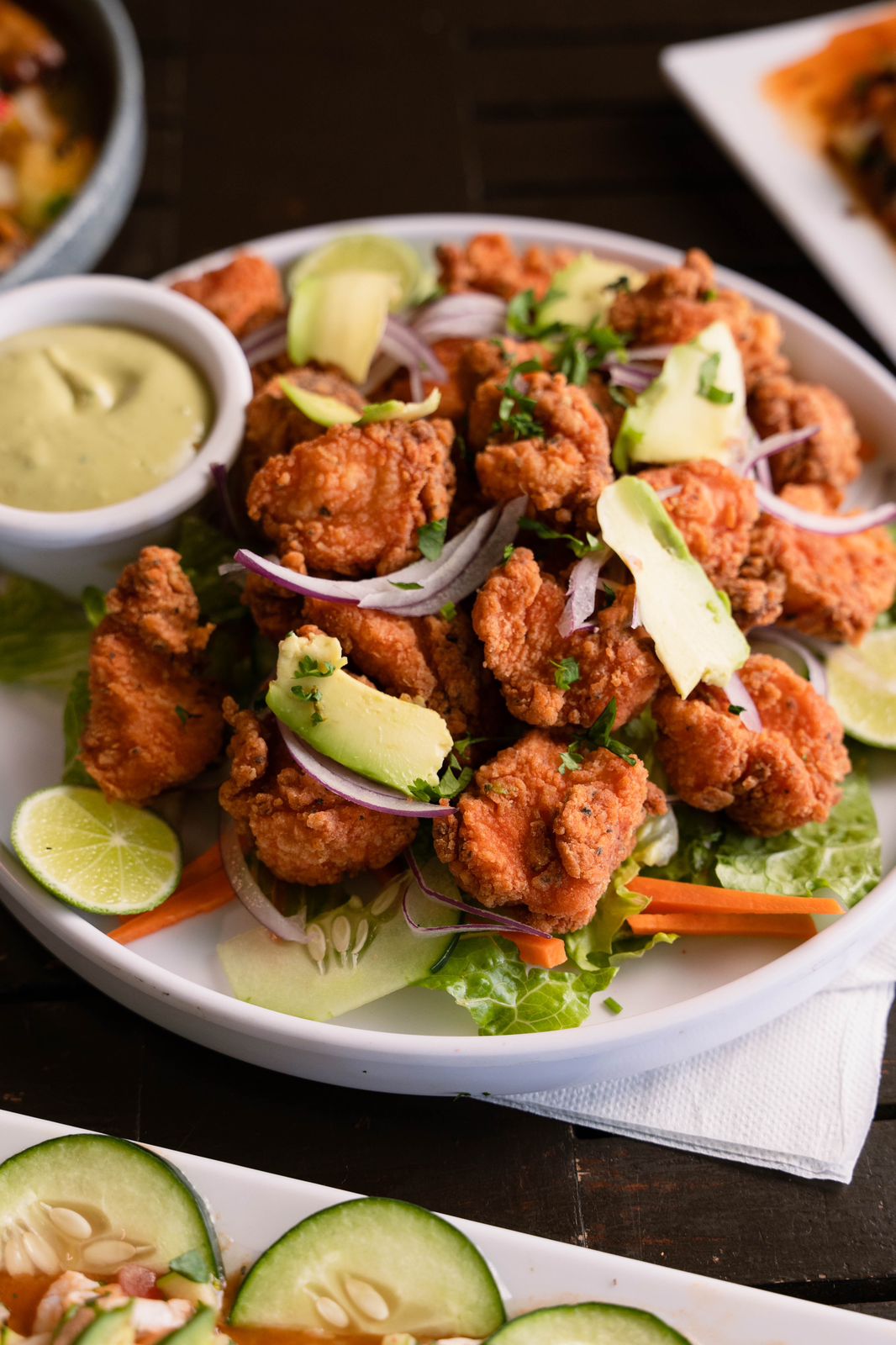 Sabrasos camarones en cobertura especial, napados con aderezo picoso sutil