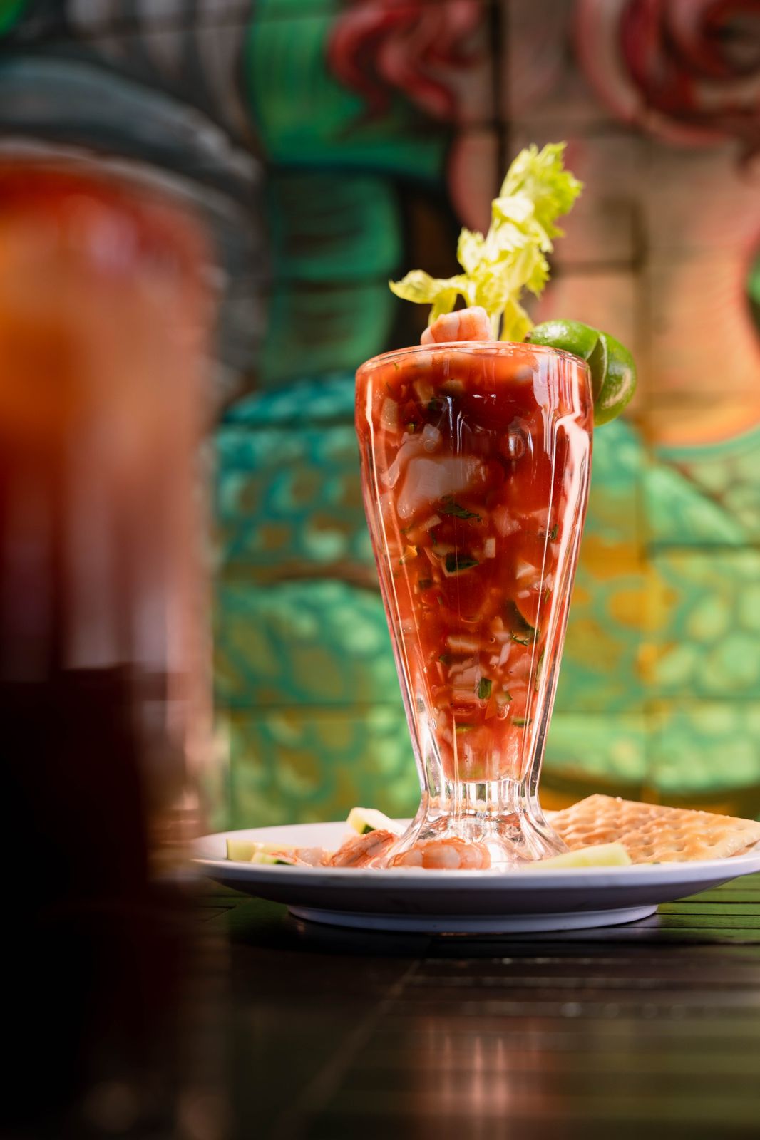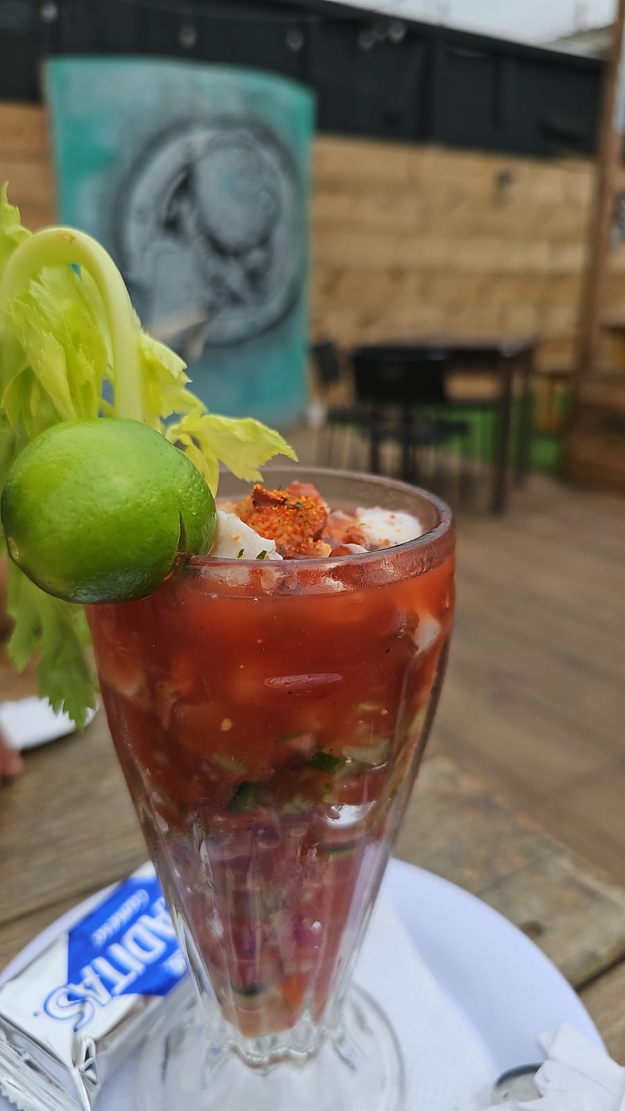 Ahogados en aguachile rojo picante con su topping de cebolla y pepino