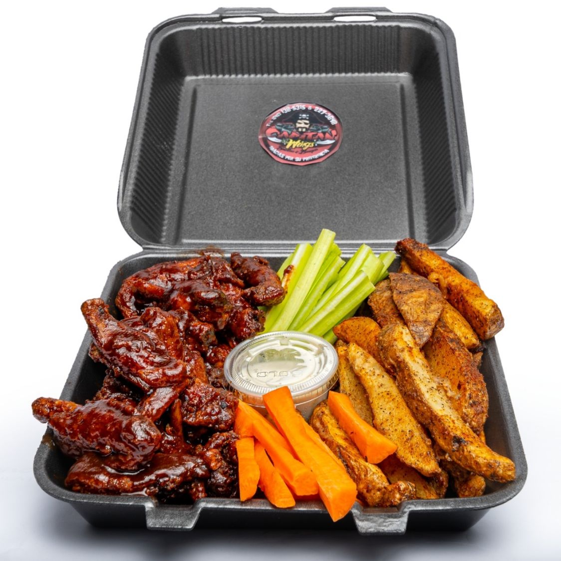 Incluye papas sazonadas, 1 pz de ranch de la casa, apio y zanahoria.