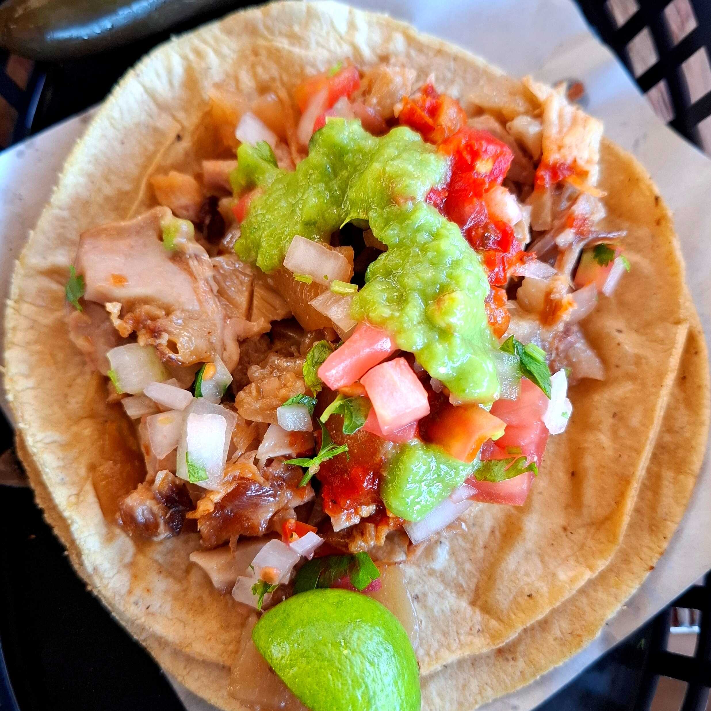 250gr de carnitas surtidas (maziza cuerito y buche) incluye salsa verdura y tortlllas