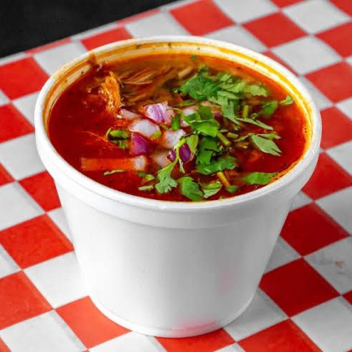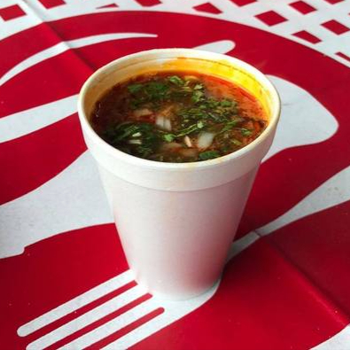 1 vaso chico de birria + tortillas, verdura, salsa y cubiertos