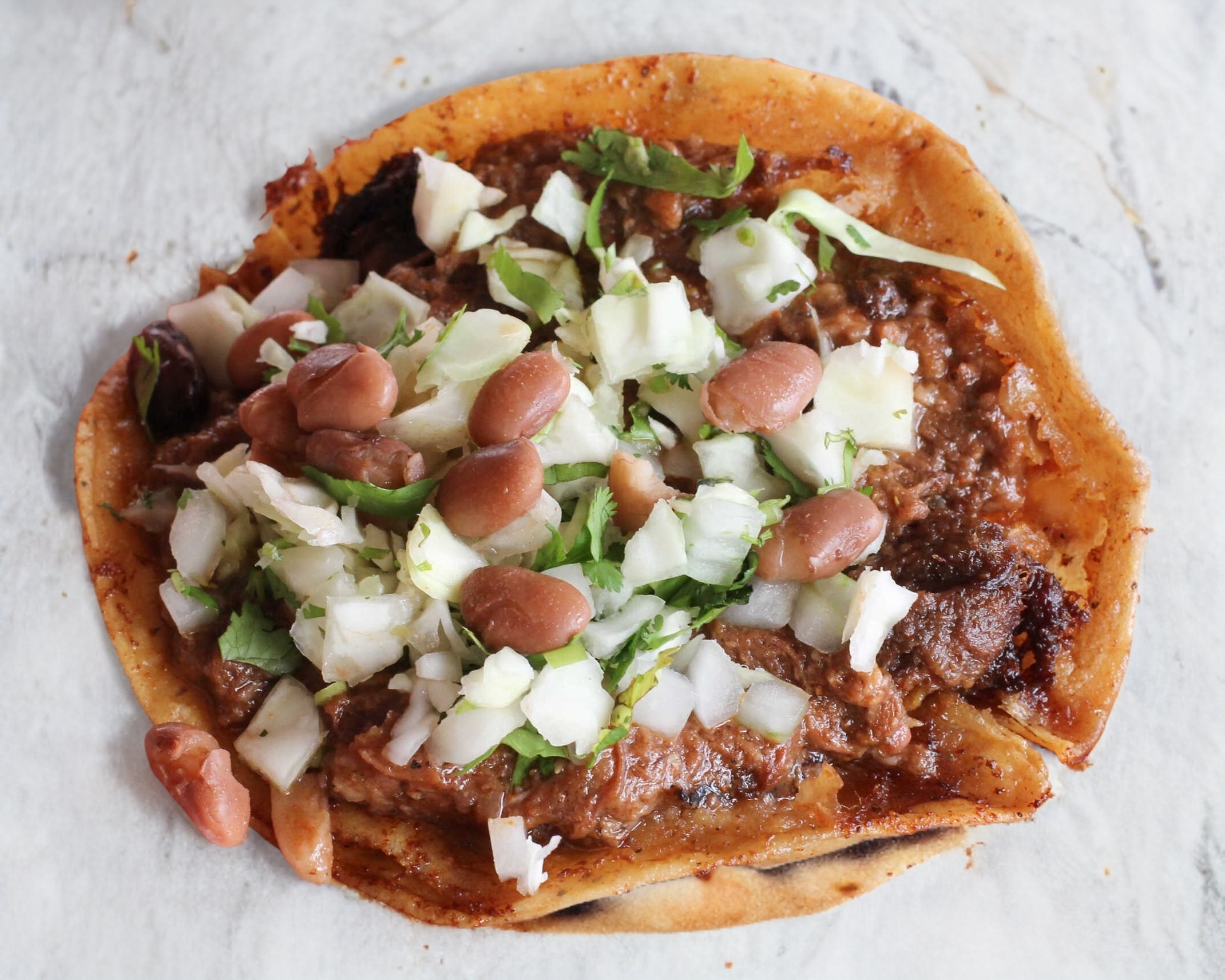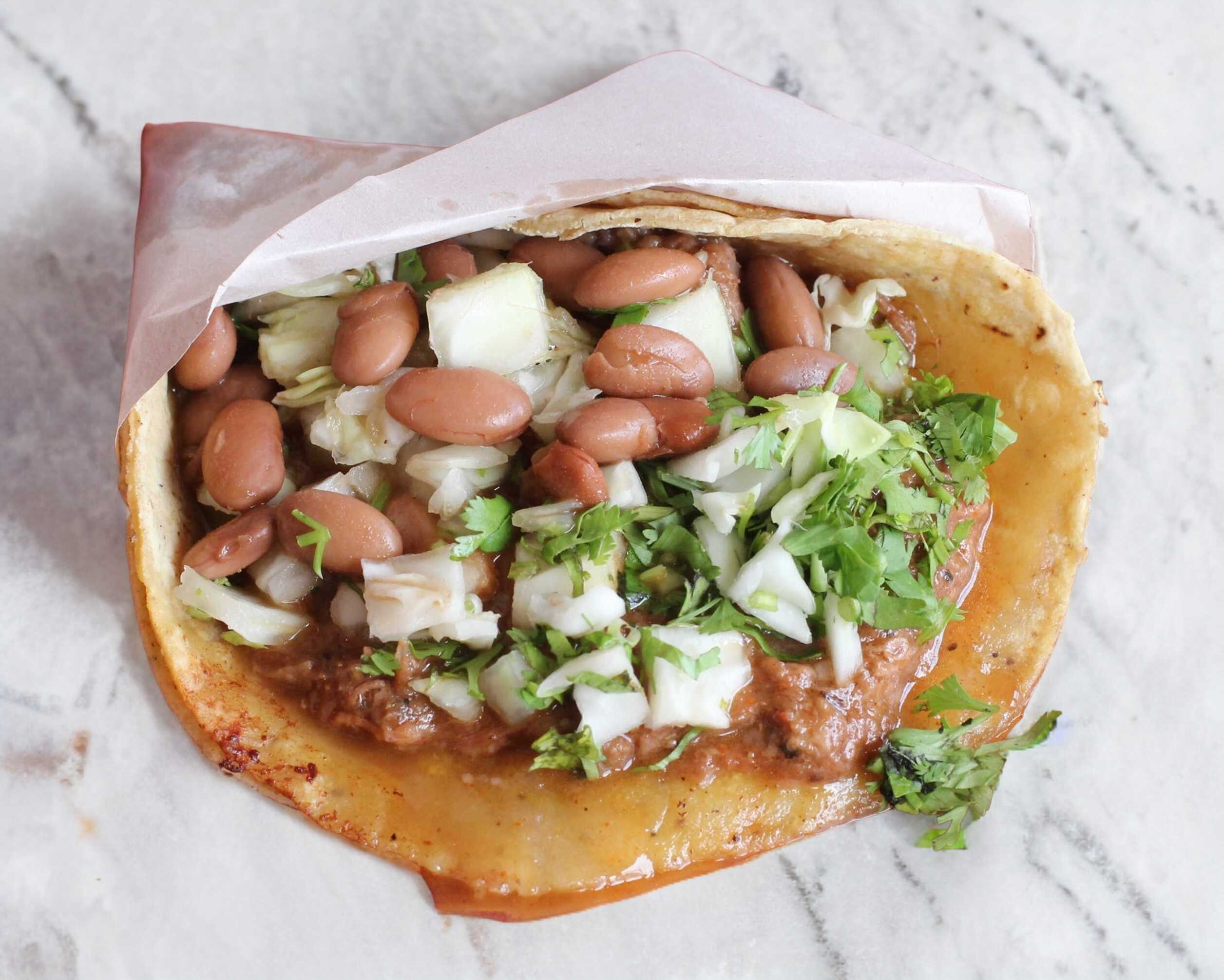 Taco de birria con frijol