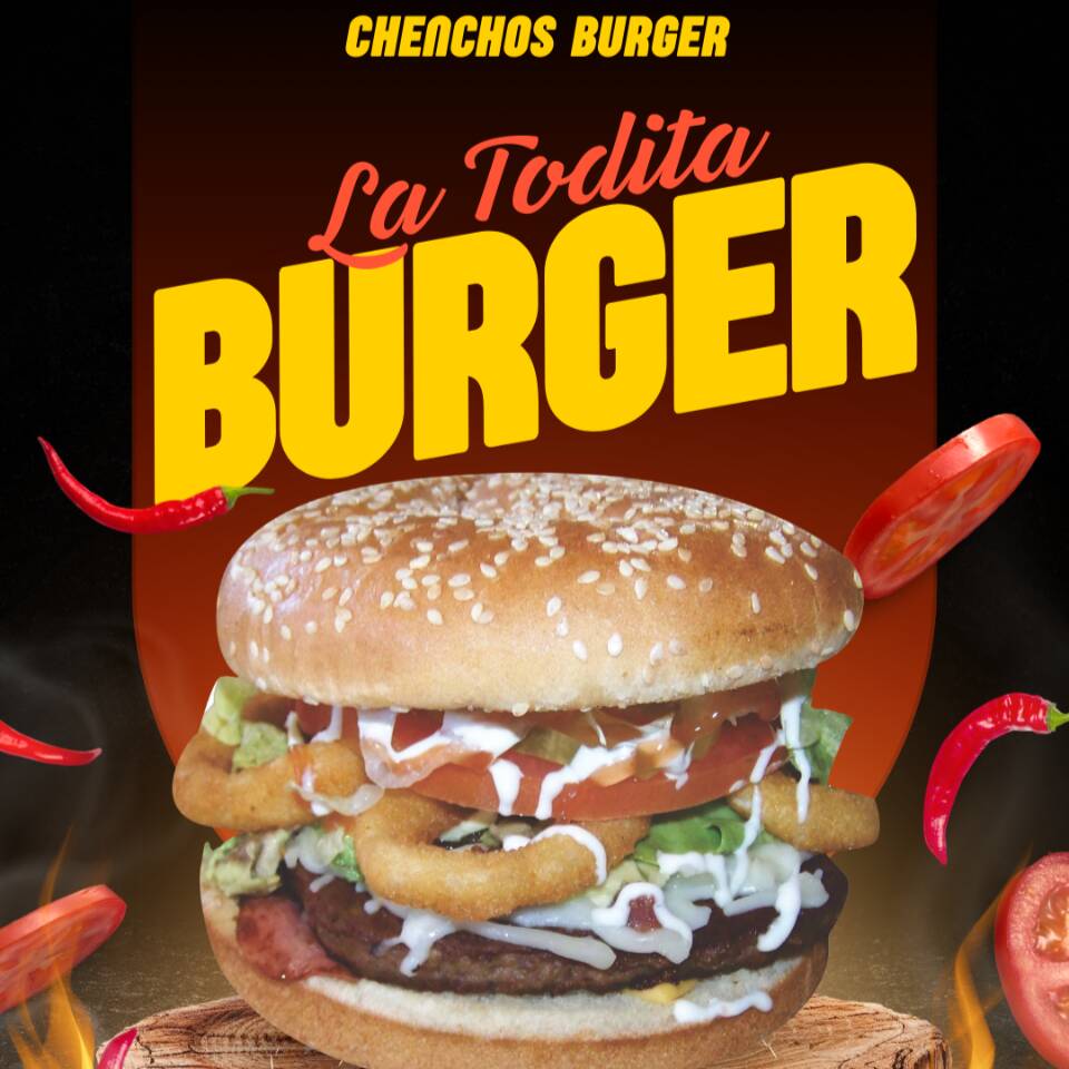 Carne de res, mezcla de quesos, queso amarillo,aguacate, aros de cebolla, jamón, tocino, verduras y aderezos. Incluye papas y soda.