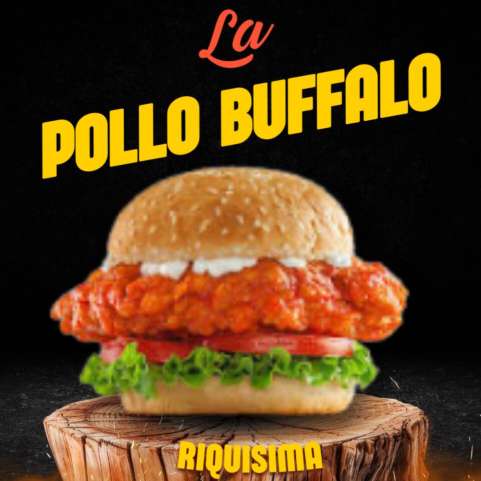 Pechuga de pollo empanizada bañada en salsa buffalo, aderezo, verduras. Inlcuye papas y soda.