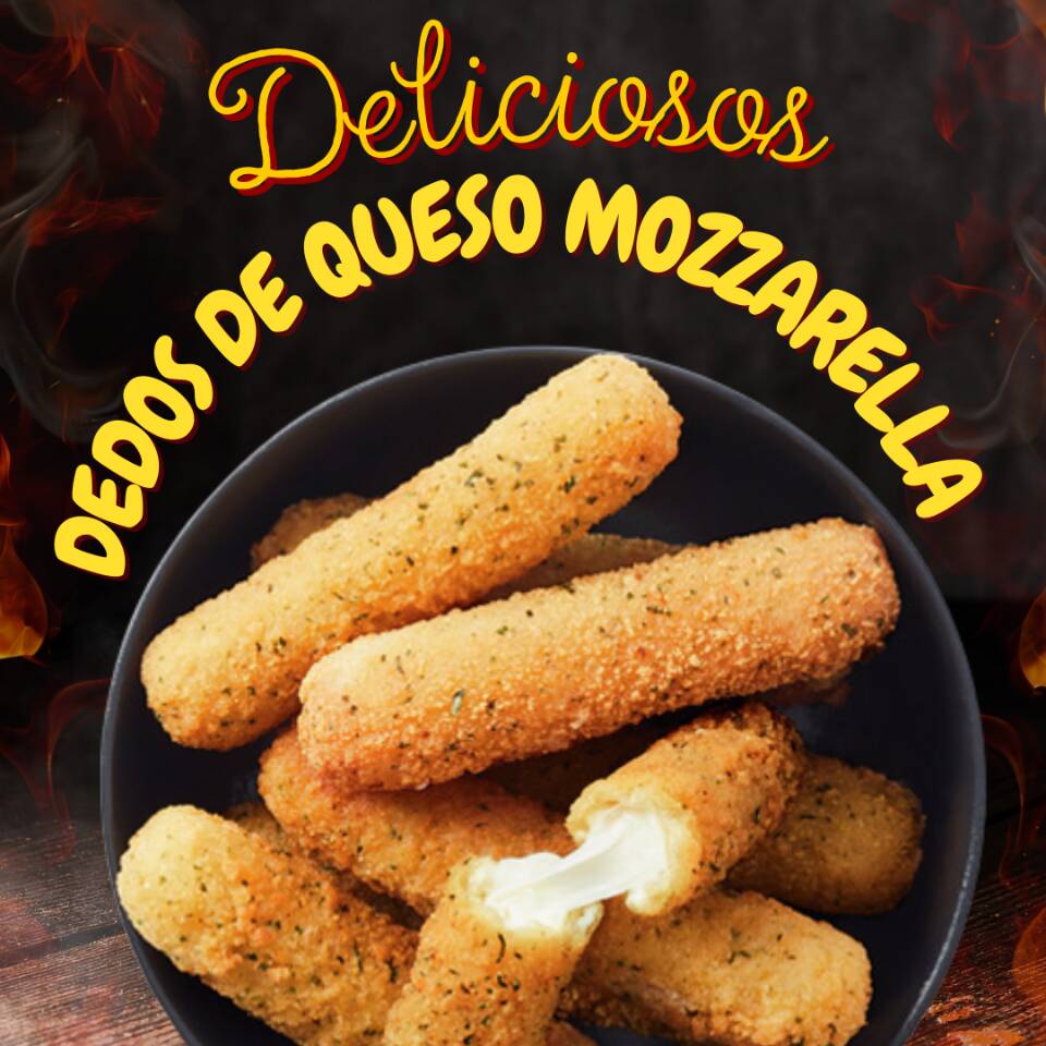 Dedos rellenos de queso mozzarella con salsa marinara.