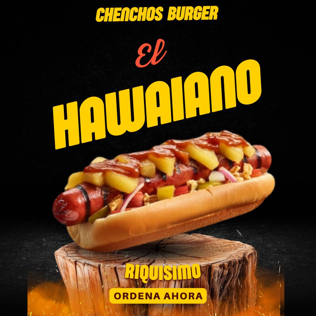 salchicha de res gigante, chilineans,tocino, queso para nachos, verduras y aderezos.