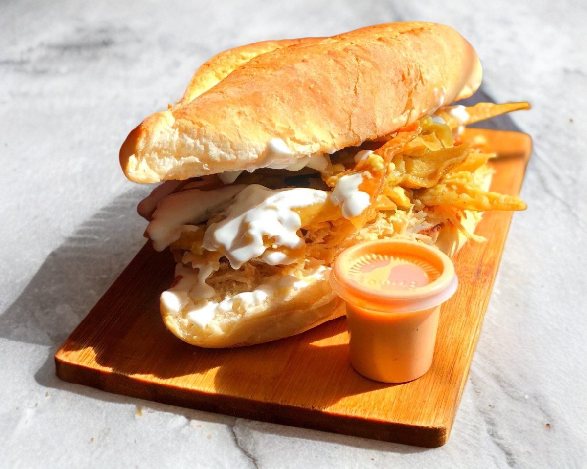 Pan bolillo con proteína a elegir, salsa a elegir y guarniciones.