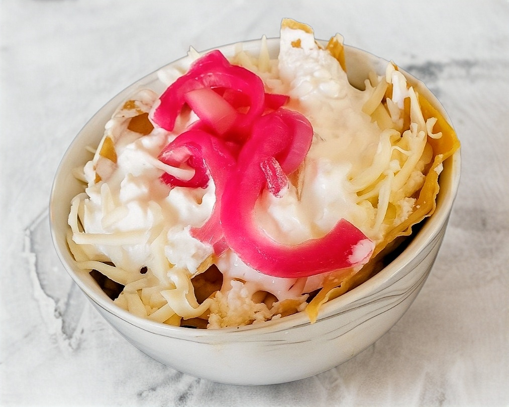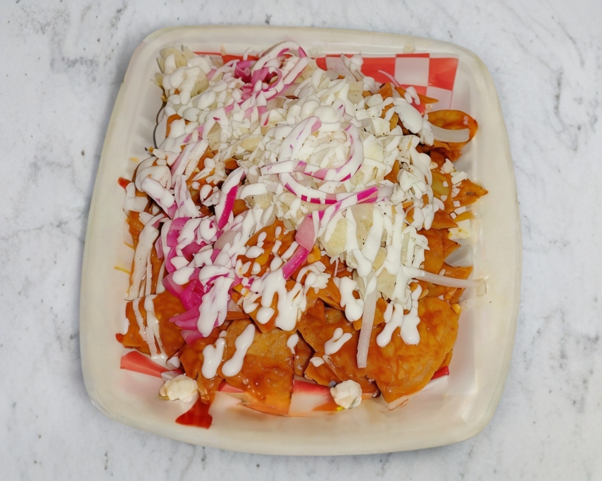 Deliciosos Chilaquiles no olvides agregar tus guarniciones y extras.
