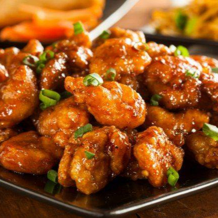 Crujientes trozos de pollo dorado salteados al wok con una mezcla de vegetales frescos y sabrosa salsa cantonesa