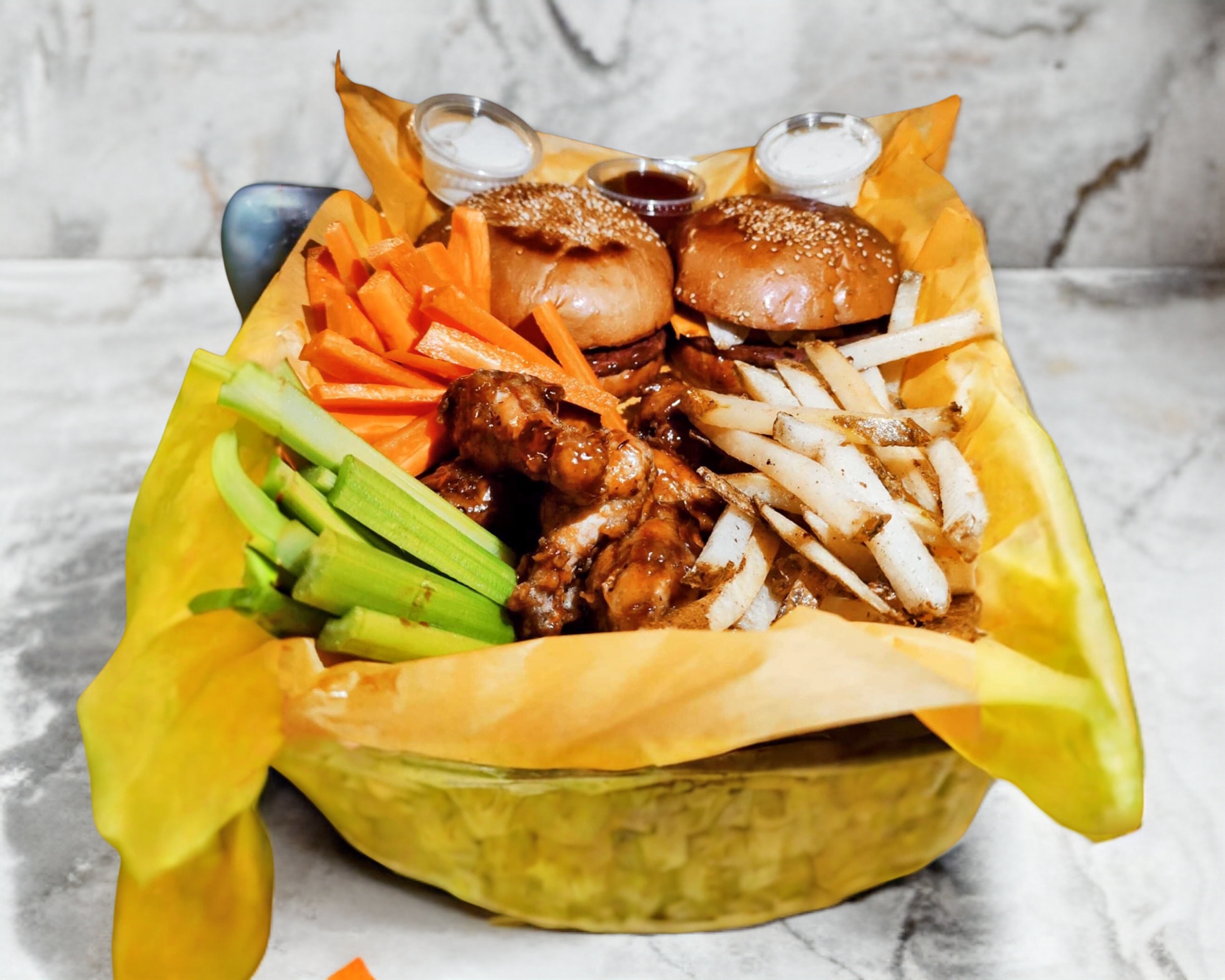 Hamburguesa Clásica*2 + Papas MEDIANAS*1 + Orden para 1 de Medio Kilo de Alitas*1