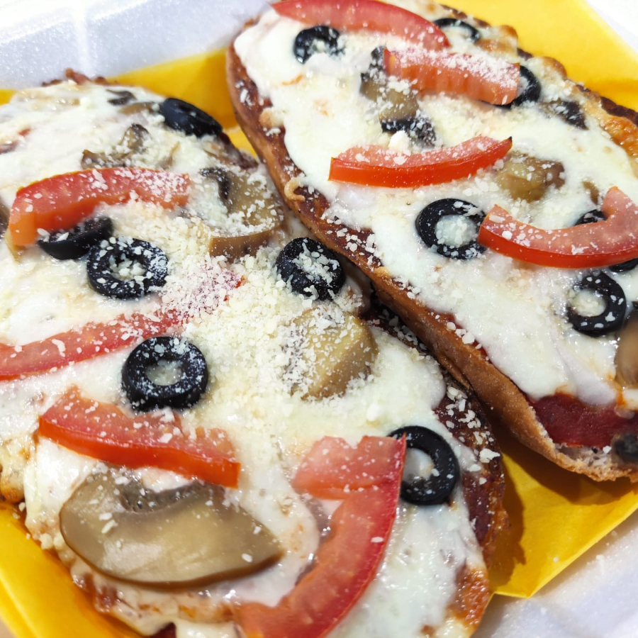 2 Pan Artesanal estilo sonora, con mantequilla a la plancha, salsa de tomate sazonada, queso mozzarella, cebolla, champiñones y aceitunas, gratinado al horno