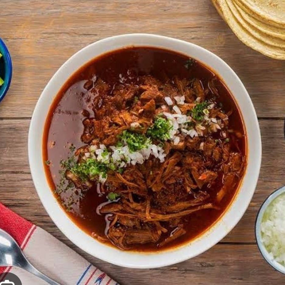Tradicional pozole rojo estilo mexicano porción chica de pozole.