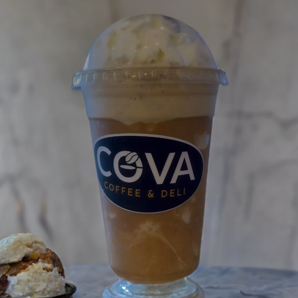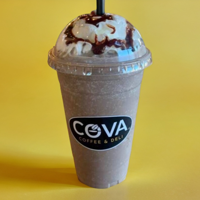 Galletas oreo, espresso, hielos triturados con leche y decorado con crema batida