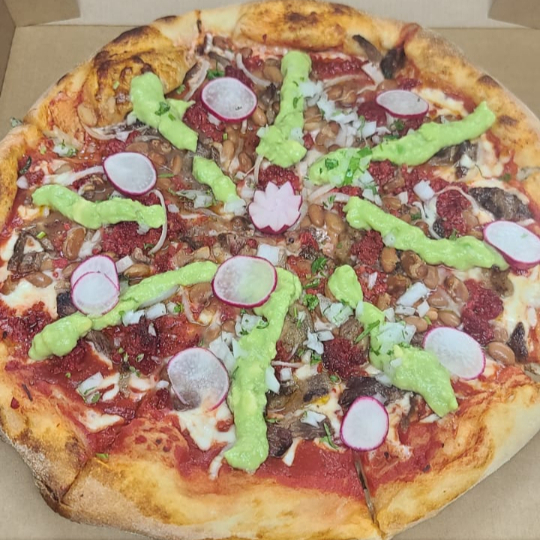 Masa artesanal crujiente cubierta con salsa de tomate, queso mozzarella, frijoles y jugosa carne al pastor. Coronada con piña fresca, cebolla y cilantro, cada bocado es una explosión de sabor que combina lo mejor de la taquería con la pasión por la pizza.