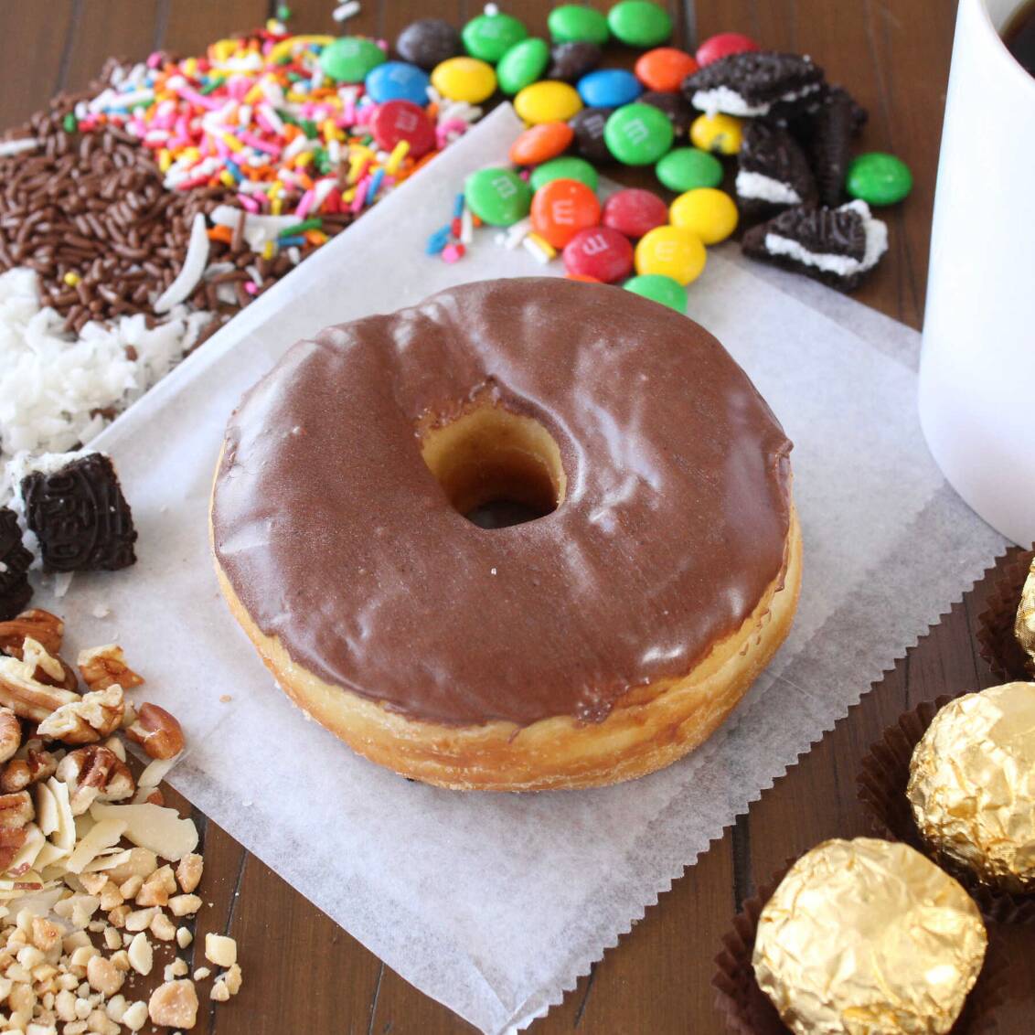 Dona con cobertura de chocolate y piezas de chocolates M&M’s