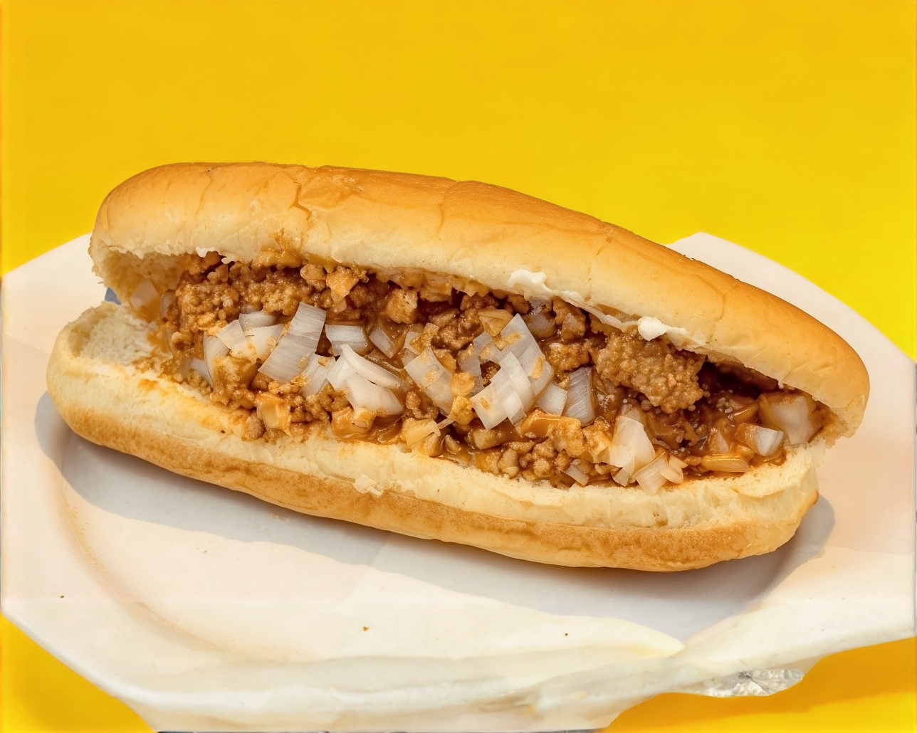 Carne 100% de res, receta de la casa, con salchicha, chilli beans y cebolla asada.