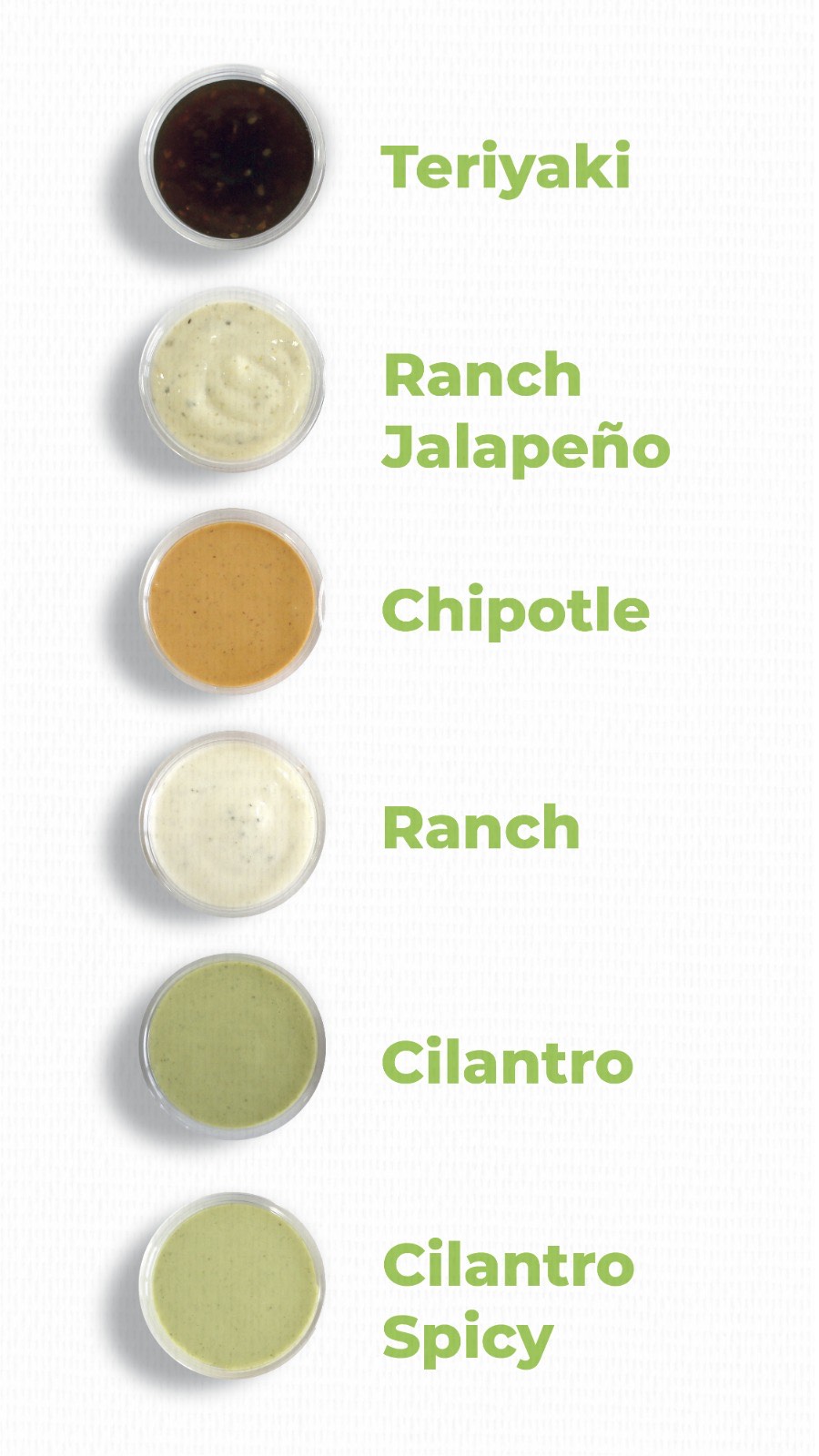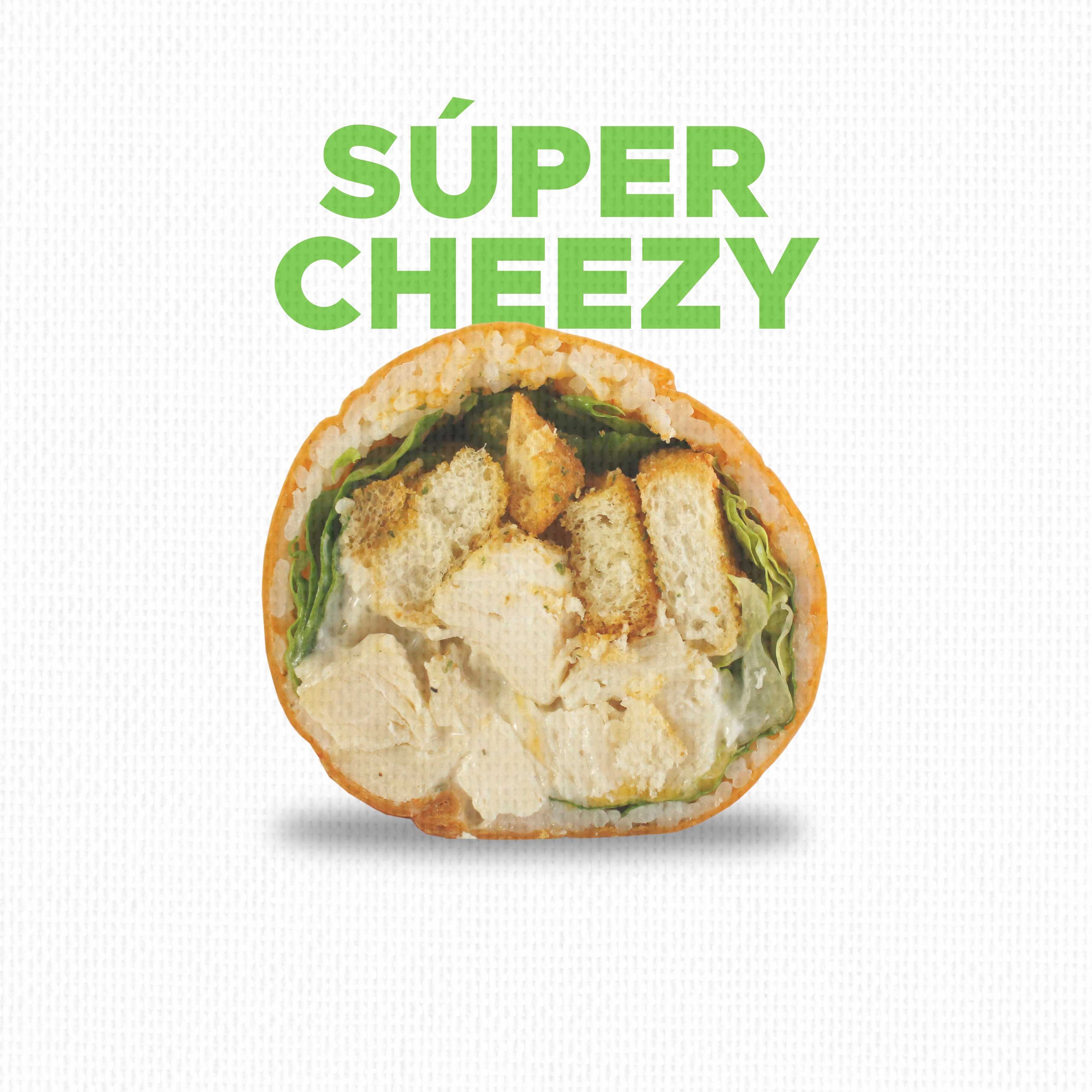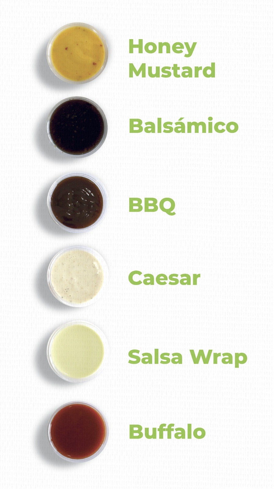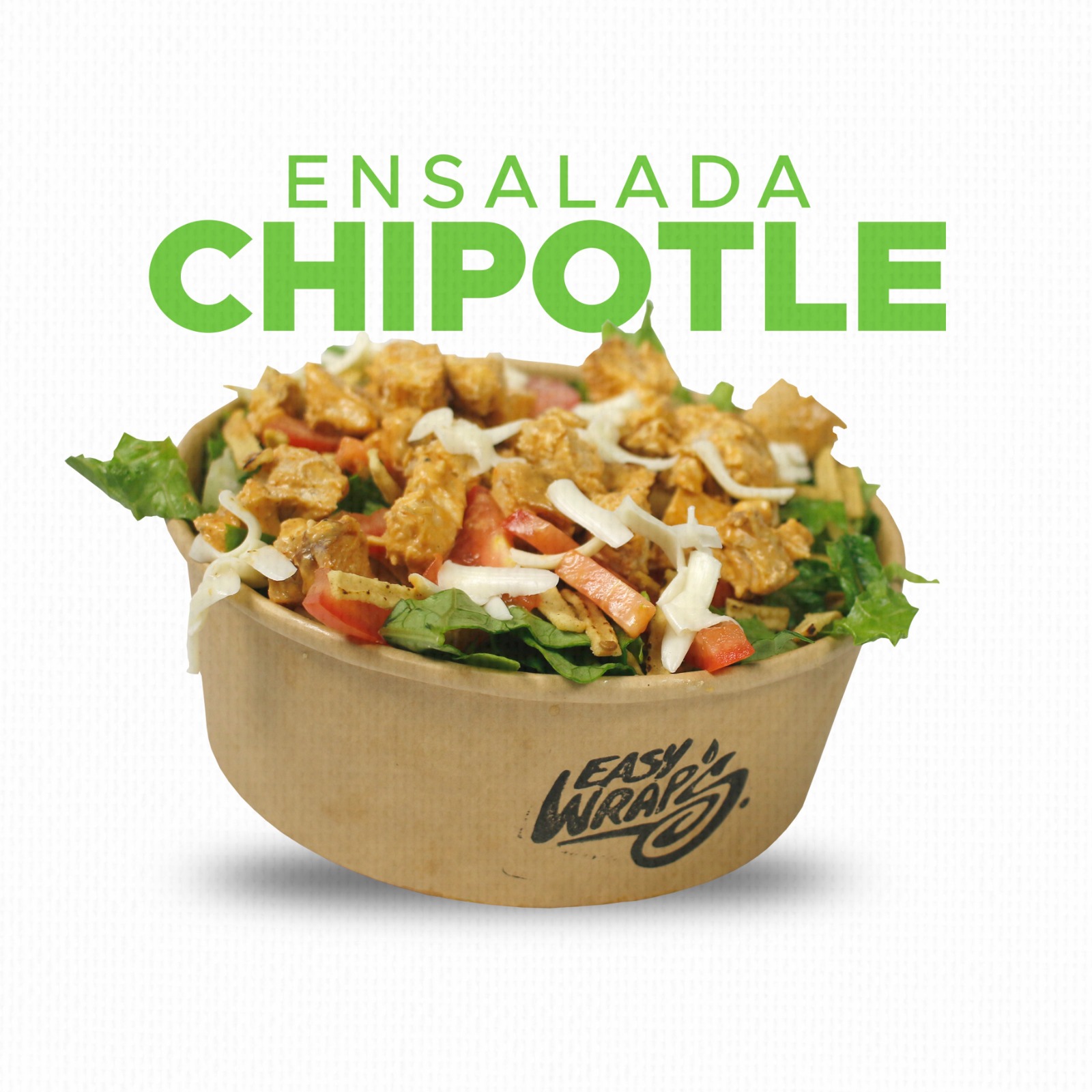 Cama de arroz, aderezo chipotle, lechuga romana,pechuga de pollo, crutones, mozarela, cheddar y aderezo