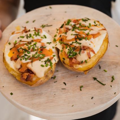 PAPAS RELLENAS DE HUEVO, TOCINO, QUESO CHEDDAR Y CHIVES
