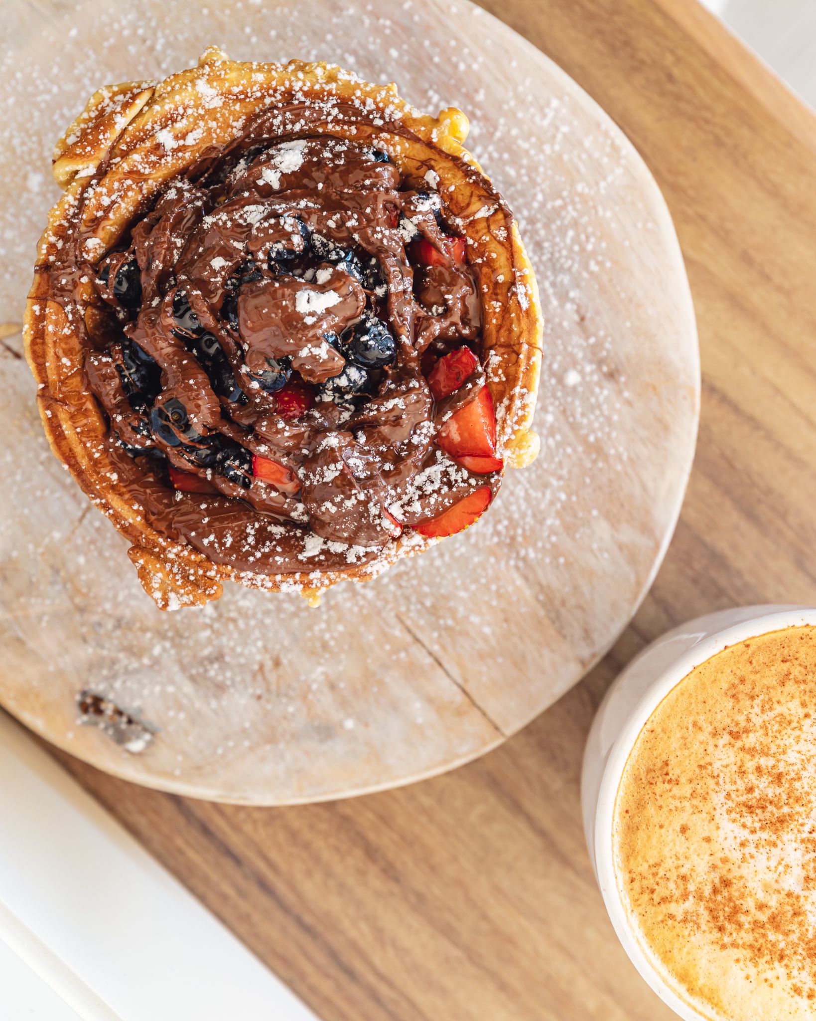 TOTOPOS DE MAIZ AZUL ORGANICOS, SALSA VERDE, QUESO MOZARELLA, YOGURT GRIEGO, AGUACATE