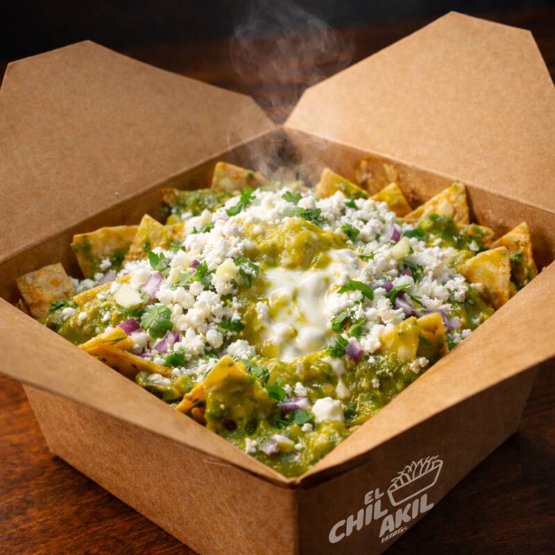 En El Chil-Akil, preparamos los chilaquiles con el balance perfecto entre crujientes y bien bañados en nuestra deliciosa salsa verde 🌿🍅, hecha con tomates verdes y chiles serranos para un toque fresco y ácido inigualable. Usamos totopos recién fritos que absorben la salsa sin perder su textura, y los coronamos con crema fresca, queso rallado, cebolla morada encurtida y un toque de cilantro.