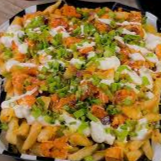 Cama de papas con media orden de boneless bañadas en salsa de tu prefrencia, cubiertas de queso amarillo por encima tocino, cebollin y aderezo ranch y chipotle de la casa.