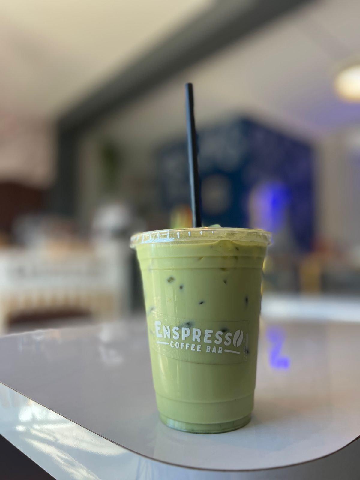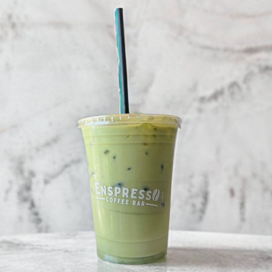Bebida preparada con polvo de té verde matcha organico, leche y agua.