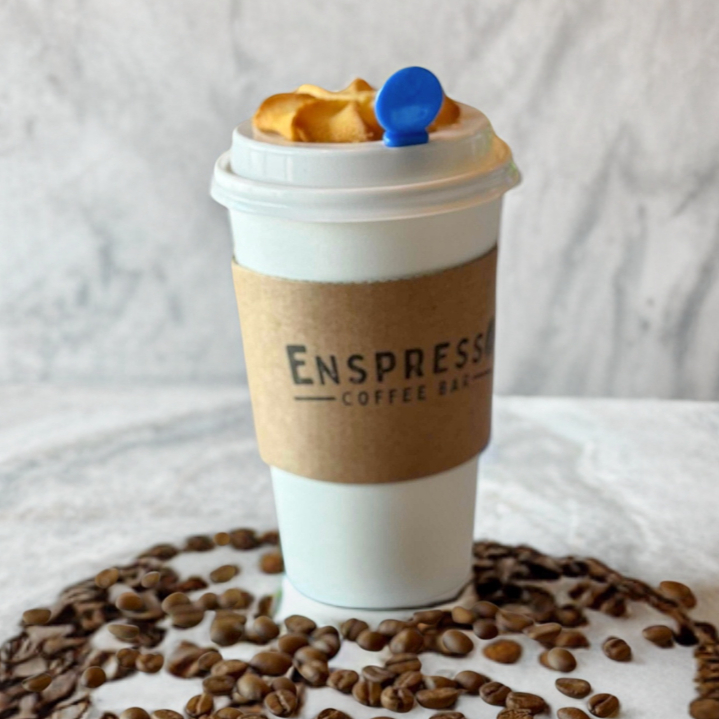 Espresso con leche vaporizada y un toque de jarabe de arce (maple) y una pizca de sal.