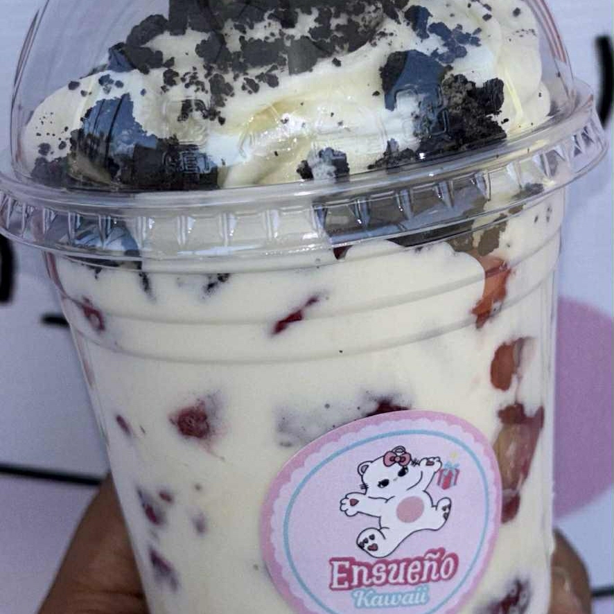 Fresas con Crema y Pay de Queso Medianas 16oz
