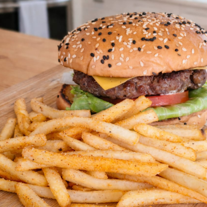Carne 100% Res, Queso Amarillo, Verduras, Chiles Jalapeños y Papas Fritas