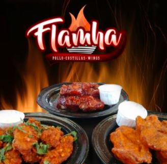 Pollo rostizado, ordden de alitas, acompañadas de orden de papas fritas, tortillas, salsa, totopos, ensalada de pasta y ensalada de repollo.