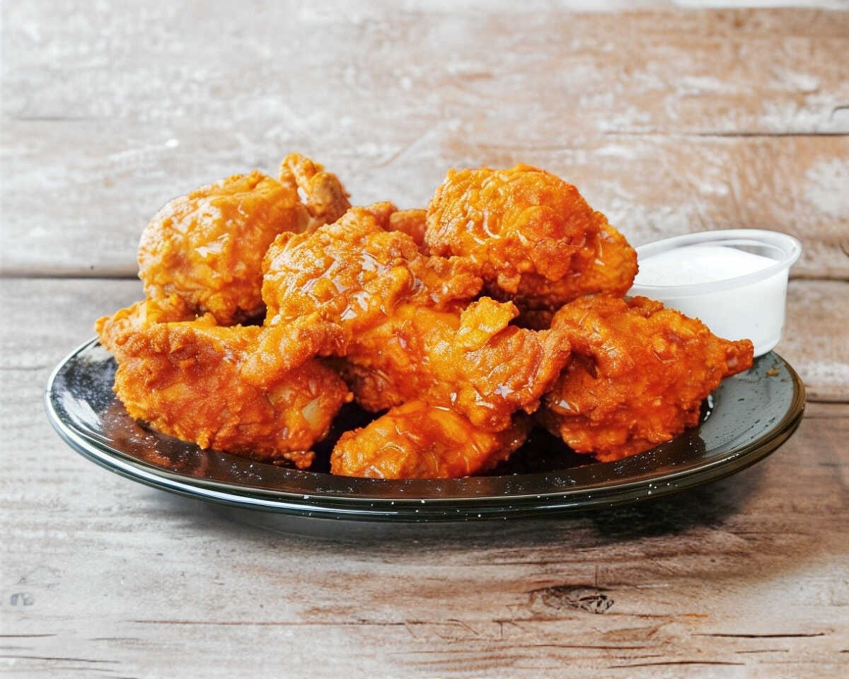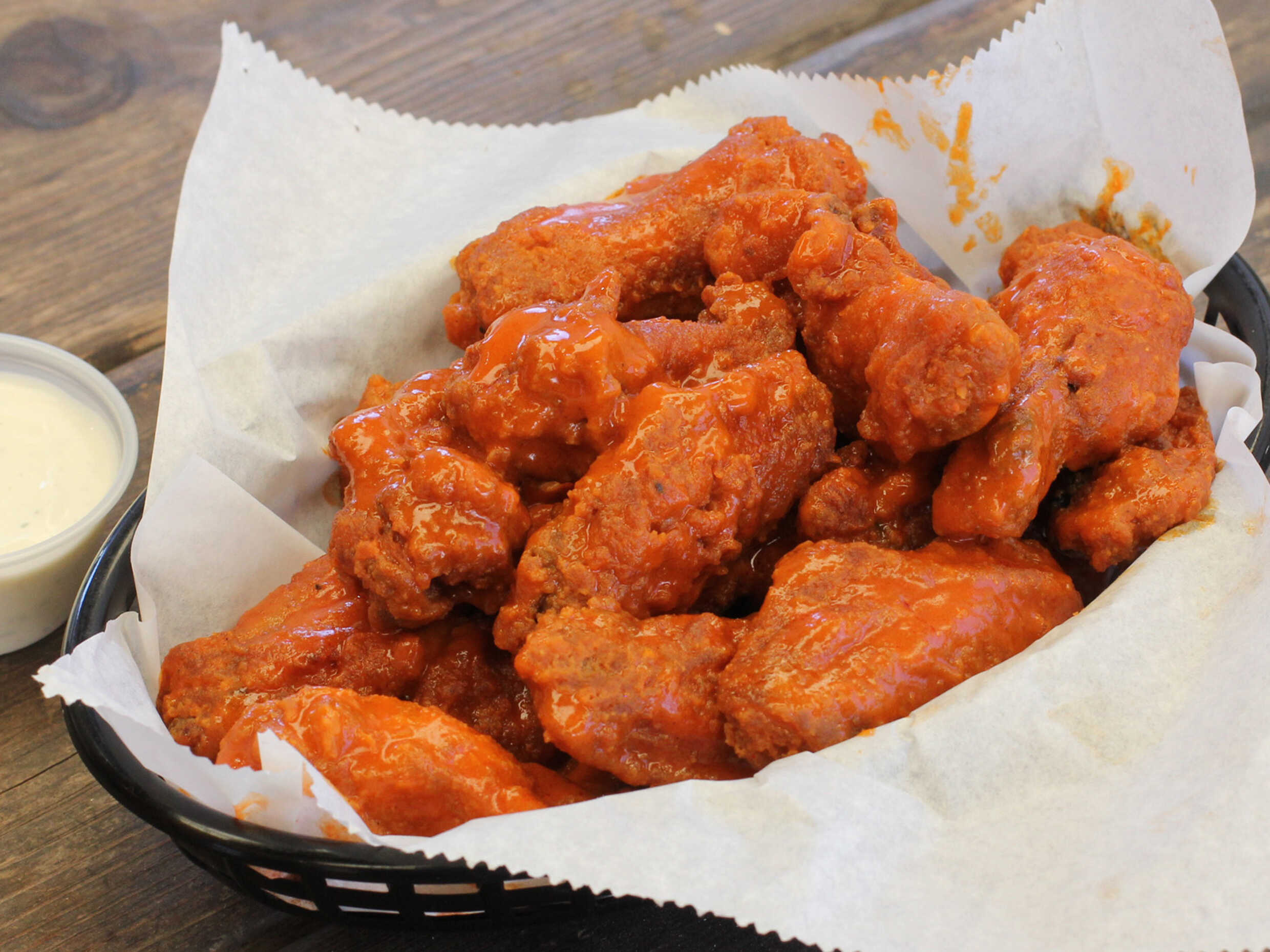 Media orden de alitas con tu salsa favorita, media orden de papas y una bebida.