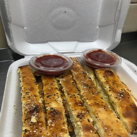 Pan con sal de ajo, perejil, mantequilla y queso parmesano.