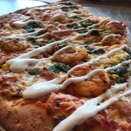 Camarón guisado con ajo y mantequilla, tocino, rajas poblanas, elote y crema, elige tu tamaño preferido