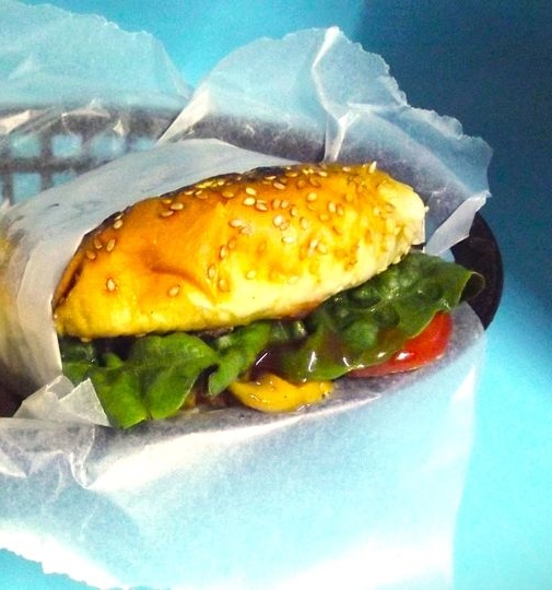 Pan artesanal ,queso blanco, champiñones, lechuga, tomate, cebolla