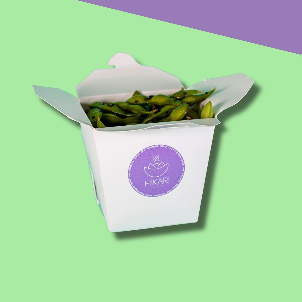 Edamames al vapor, bañados en aceite de ajonjolí, salsa soya y ajonjolí negro.