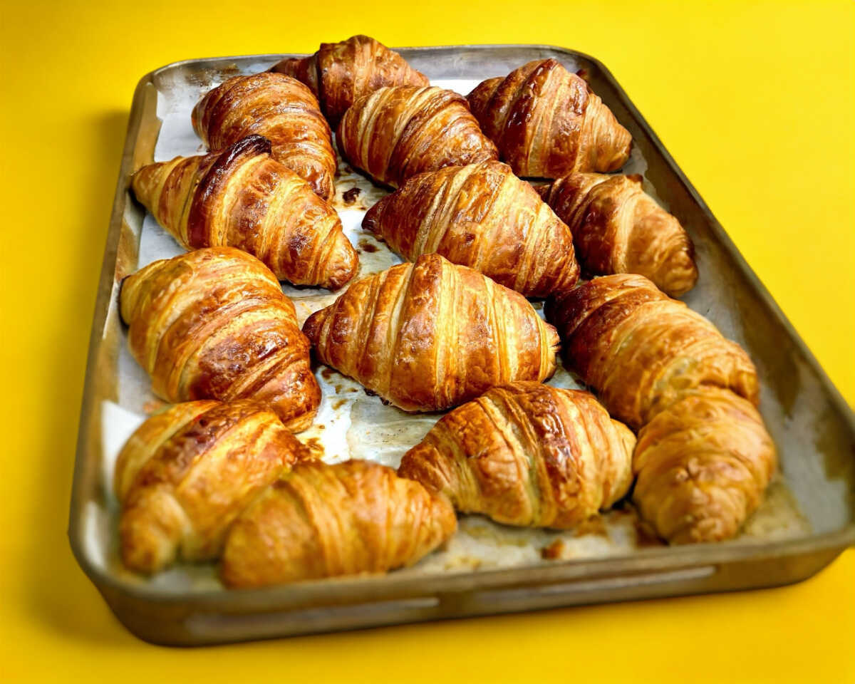 Panecillo francés. Capas de masa madre, mantequilla y chocolate semiamargo.