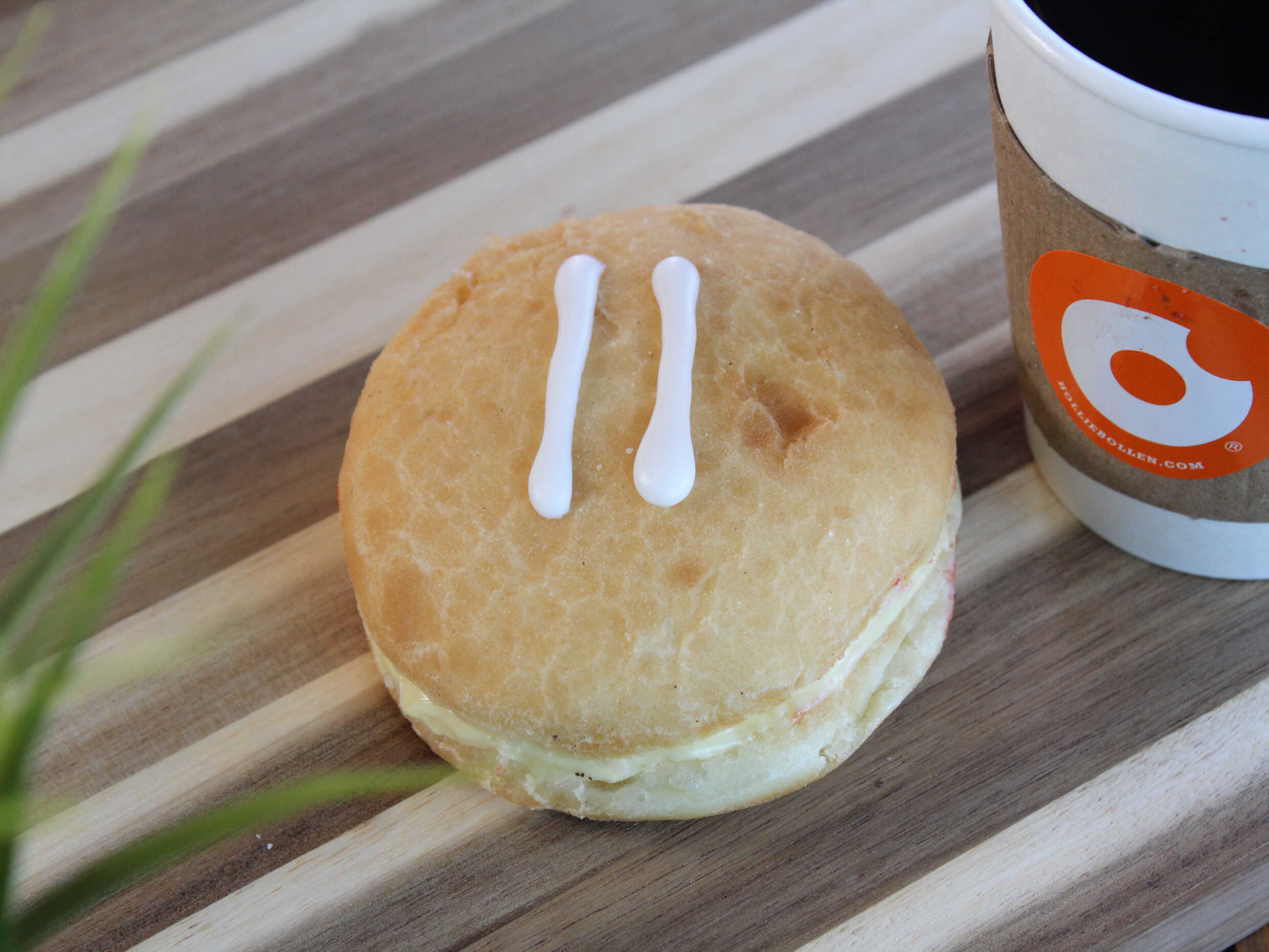 Hollieböllen recién elaborada, con cobertura de glaseado cristalizado, que no podrás dejar de acompañar con un café de la casa :)