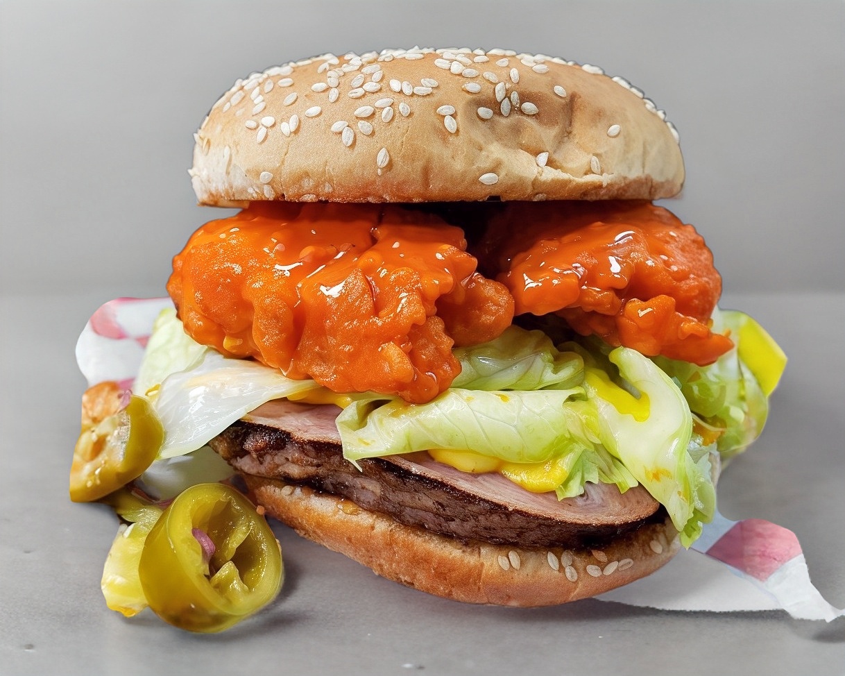 100% Carne de res. Incluye Papas, Boneless, (BBQ, Búfalo o Naturales) Queso amarillo, Tomate, Cebolla, Lechuga, Catsup, Mayonesa, Mostaza.