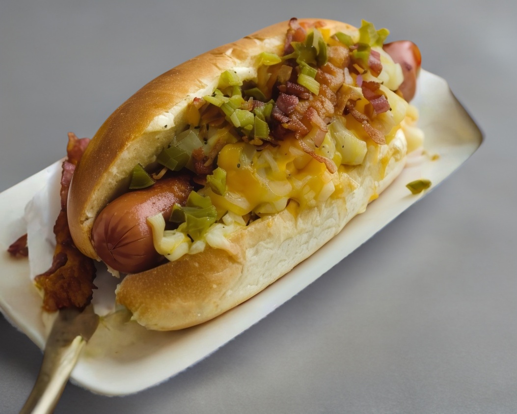 100% Carne de res preparada diariamente. Incluye papas, Queso Americano, Tomate, Cebolla, Lechuga, pepinillos Catsup, BBQ, Mayonesa, Mostaza.