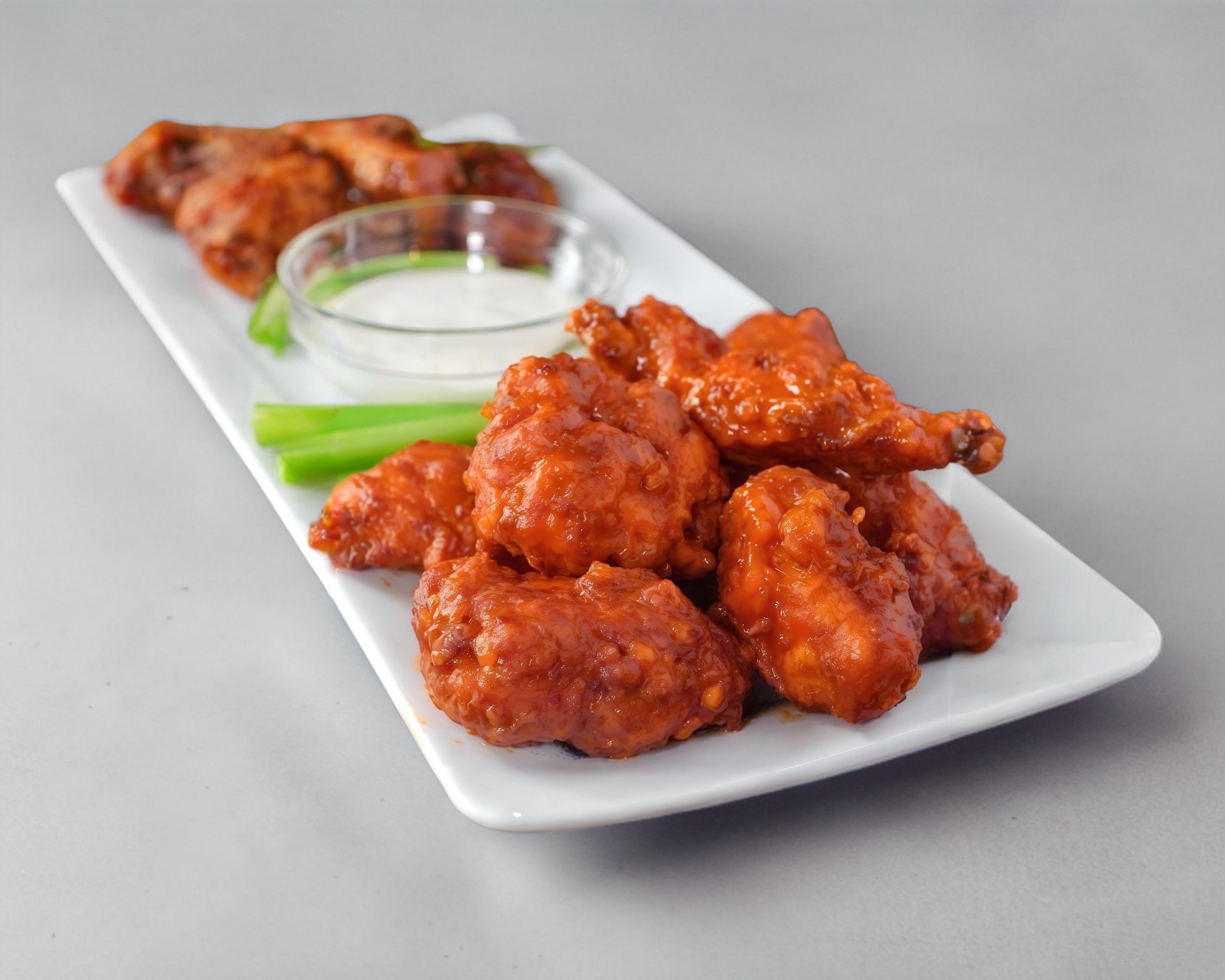 1/2 Kg de Boneless, Acompañado de (aderezo ranch, zanahorias, apio y papas fritas)