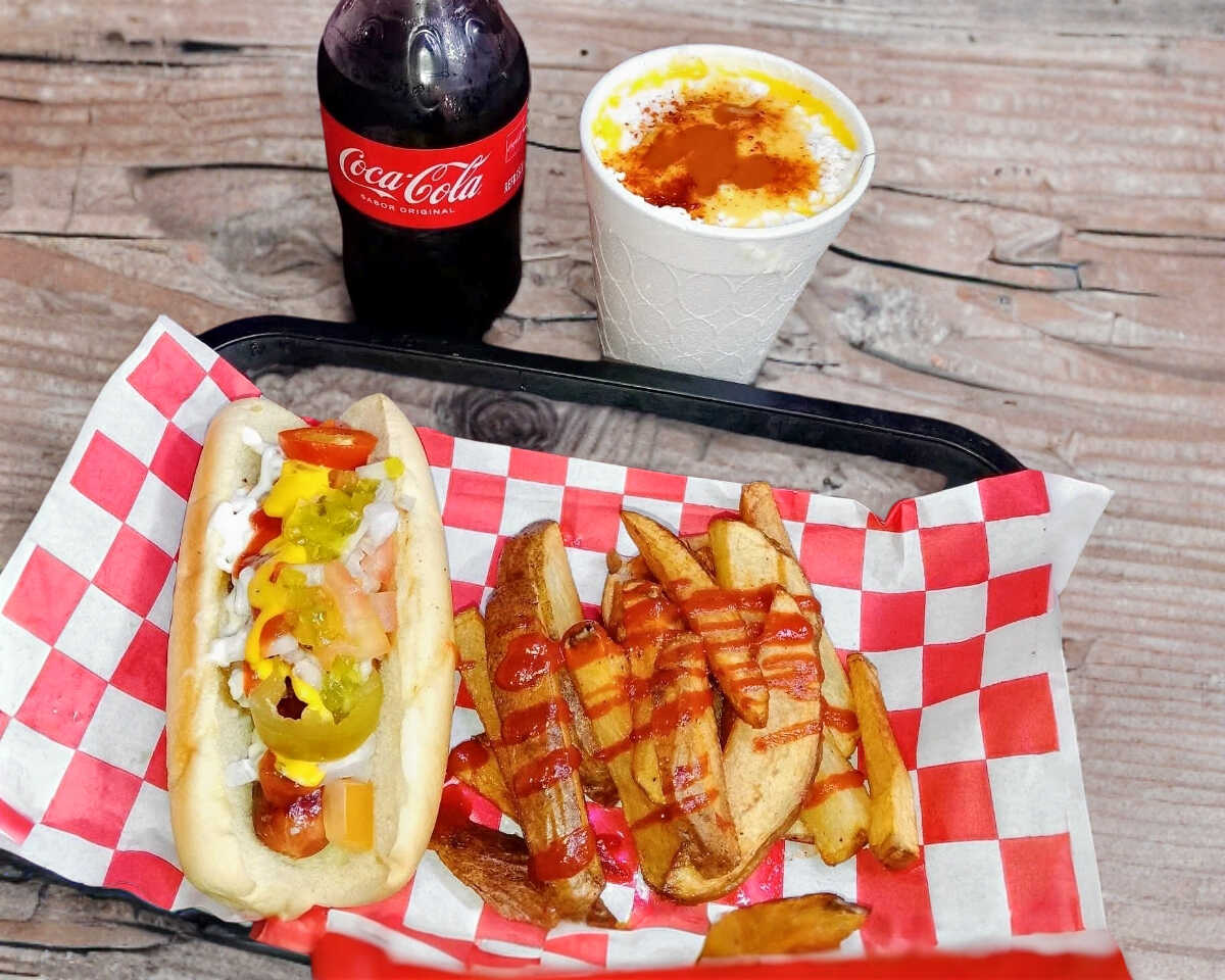 Vaso de elote (chico)*1 + Hotdog sencillo*1 + Coca Cola 300ml*1 + Papas a La Francesas Sencillas*1