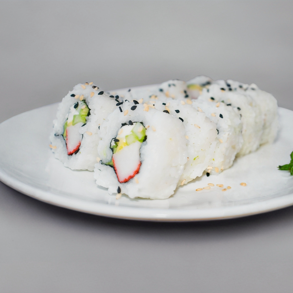 Surimi, queso, aguacate, pepino y ajonjolí