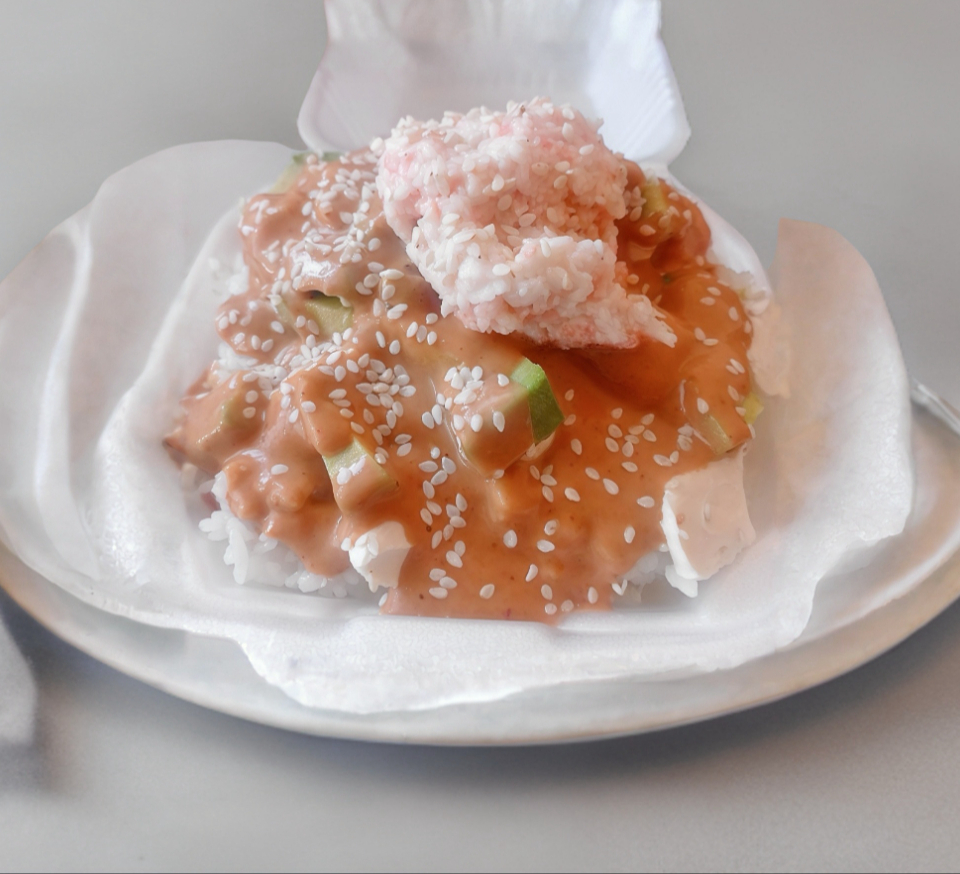 Surimi, queso, aguacate, ajonjolí con tampico picoso encima