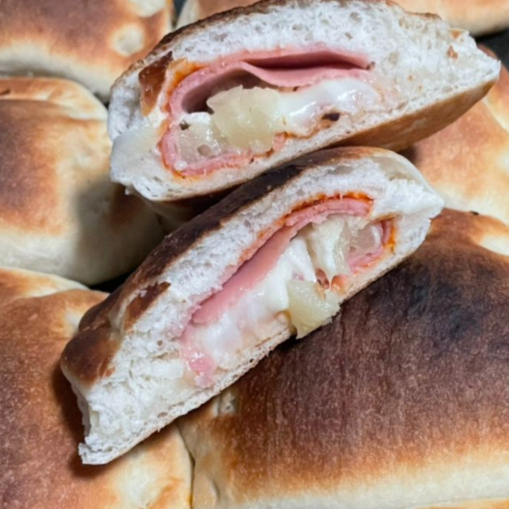 Empanada Horneada Rellena De Queso Monterrey Jamon De Pavo, Piña Y Salsa Casera De Tomate