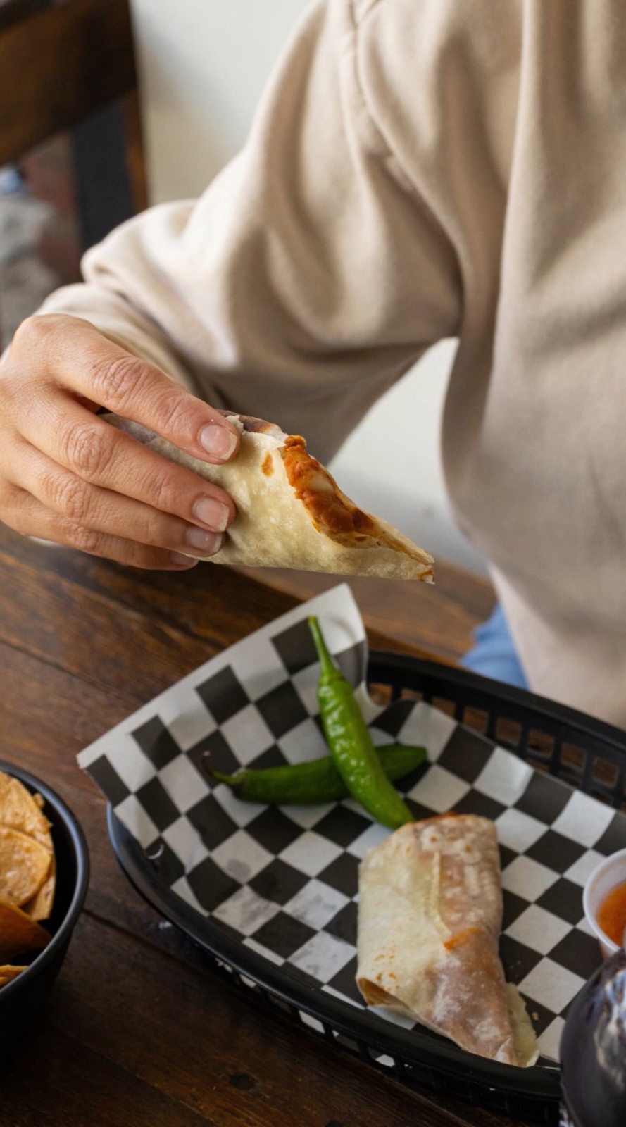 Burrito con frijoles refritos con chorizo y queso, al estilo norteño.