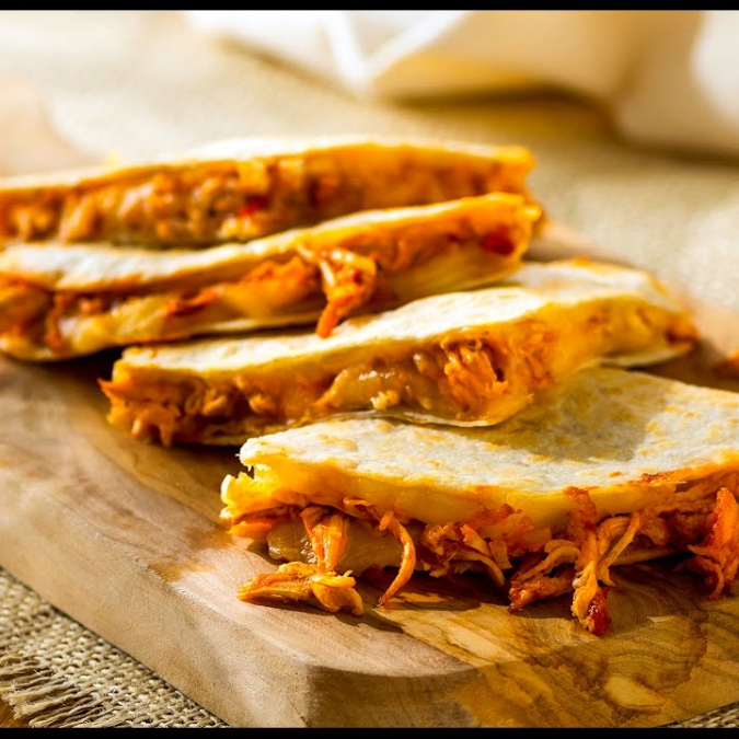 2 Tortillas de harina con queso, jamón y proteína a elegir (pechuga o birria).