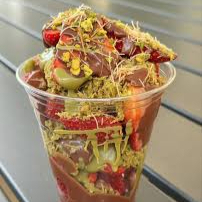 Fruta de temporada, mermelada, miel maple, lechera, chocolate líquido y crema batida.